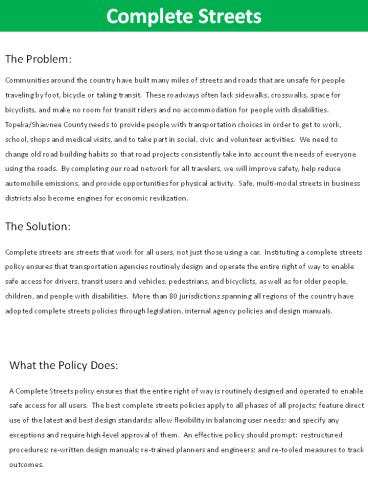 Title: Complete Streets