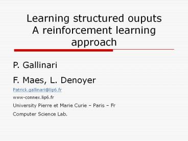 <Notice: Removed> Learning structured ouputs A reinforcement learning approach PowerPoint PPT Presentation