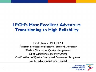 1LPCHs Most Excellent Adventure Transitioning to