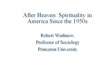 After Heaven: Spirituality in America Since the 1950s PowerPoint PPT Presentation