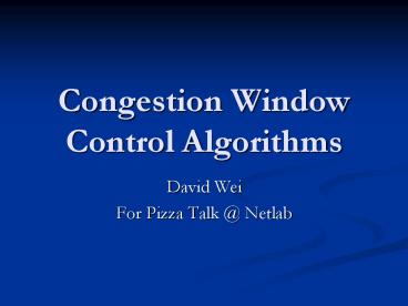 Congestion Window Control Algorithms PowerPoint PPT Presentation