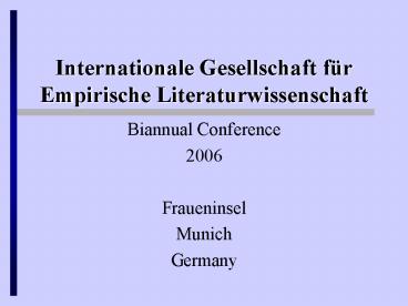 Title: Internationale Gesellschaft fr Empirische Literaturwissenschaft