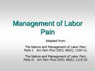 The Nature and Management of Labor Pain Parts I. Am Fam Phys 2003 68(6) 1109-12.
