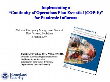 Essential (COP-E) for Pandemic Influenza