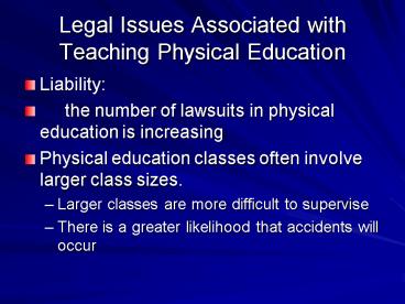 Title: Legal Issues Associated with Teaching Physical Education