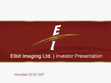 Title: Elbit Imaging Ltd. | Investor Presentation