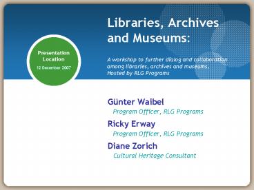 1Libraries, Archives and MuseumsA workshop to