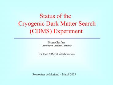 - Cryogenic Dark Matter Search (CDMS) Experiment