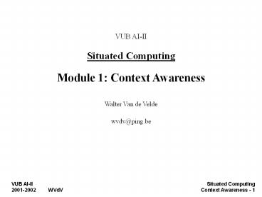 <Notice: Removed> VUB AIII Situated Computing Module 1: Context Awareness PowerPoint PPT Presentation