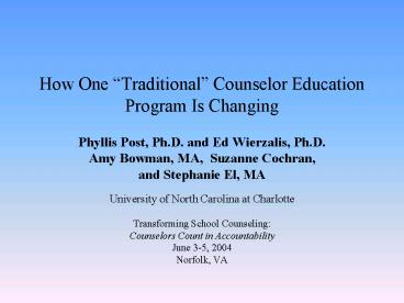 - Phyllis Post, Ph.D. and Ed Wierzalis, Ph.D.