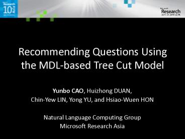 Title: Recommending Questions Using the MDLbased Tree Cut Model