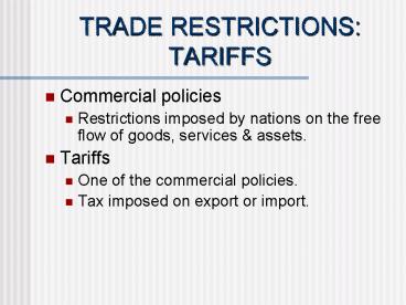 Title: TRADE RESTRICTIONS: TARIFFS