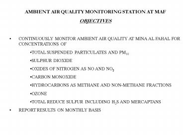 AMBIENT AIR QUALITY MONITORING STATION AT MAF PowerPoint PPT Presentation