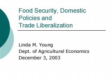 Title: Food Security, Domestic Policies and Trade Liberalization