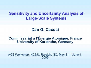 Title: Sensitivity and Uncertainty Analysis of LargeScale Systems