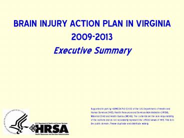 Title: BRAIN INJURY ACTION PLAN IN VIRGINIA 20092013 Executive Summary
