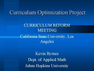 Curriculum Optimization Project PowerPoint PPT Presentation
