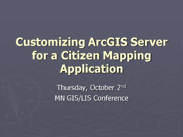Customizing ArcGIS Server for a Citizen Mapping Application PowerPoint PPT Presentation