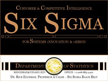 DR. RICK EDGEMAN, PROFESSOR CHAIR SIX SIGMA