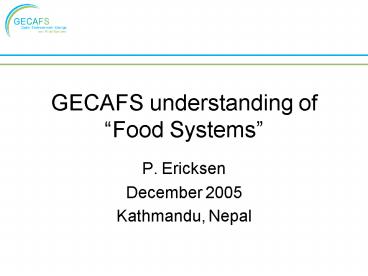 Title: GECAFS understanding of Food Systems