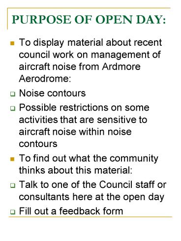 Title: PURPOSE OF OPEN DAY: