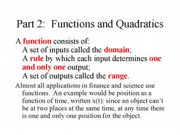 <Notice: Removed> Part 2: Functions and Quadratics PowerPoint PPT Presentation