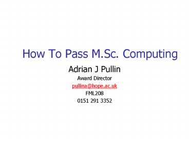 How To Pass M.Sc. Computing PowerPoint PPT Presentation