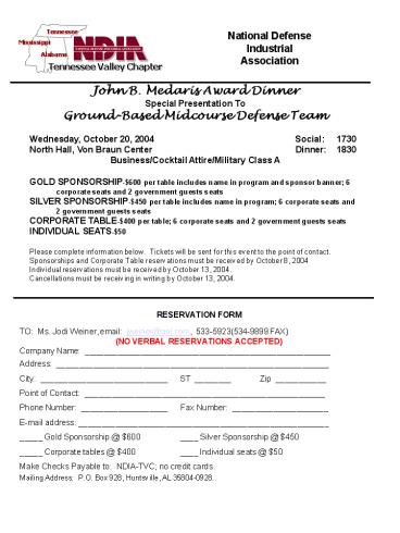 Payable to NDIA-TVC no credit cards. Mailing