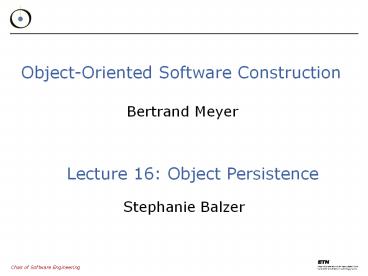 <Notice: Removed> Object-Oriented Software Construction PowerPoint PPT Presentation