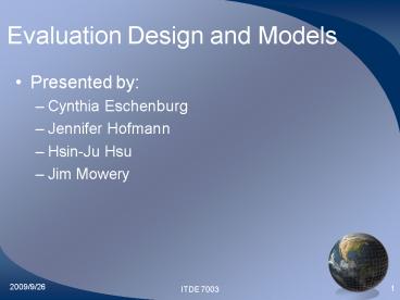 1Evaluation Design and Models