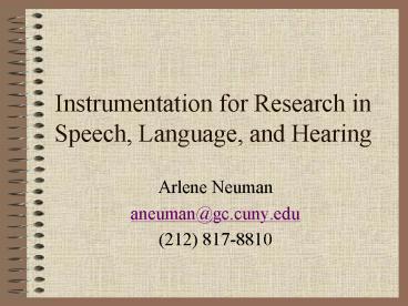 Title: Instrumentation for Research in Speech, Language, and Hearing