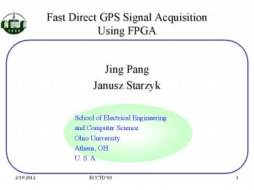 Title: Fast Direct GPS Signal Acquisition Using FPGA