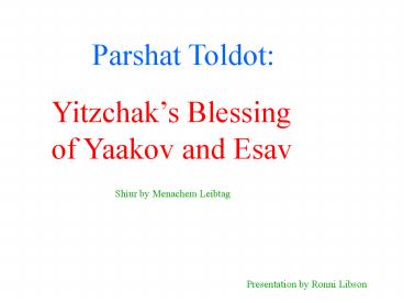 Title: Parshat Toldot: