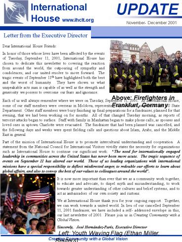 Dear International House Friends In honor of