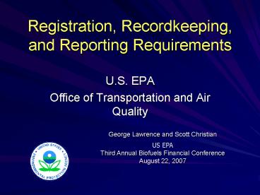 Title: Registration, Recordkeeping, and Reporting Requirements