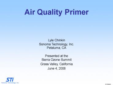 Lyle Chinkin Sonoma Technology, Inc. Petaluma,