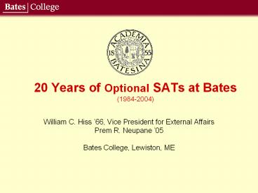 Title: 20 Years of Optional SATs at Bates 19842004