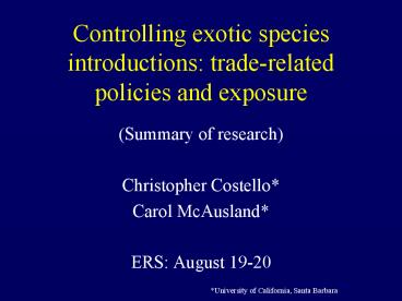 Controlling exotic species introductions: traderelated policies and exposure PowerPoint PPT Presentation