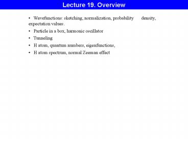 probability density, expectation values. - Particle in a box, harmonic oscillator