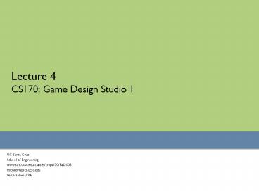 Lecture 4 CS170: Game Design Studio 1 - PowerPoint PPT Presentation