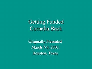 Title: Getting Funded Cornelia Beck