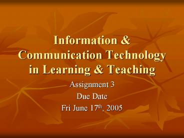 • Assignment 3 A simple learning package (2500