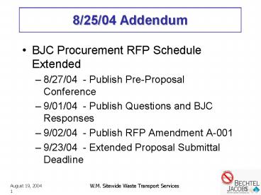 - 9/02/04 - Publish RFP Amendment A-001