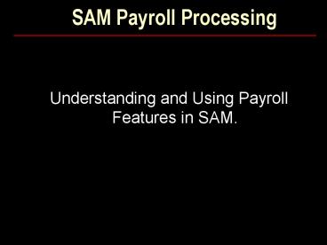 and adjustments using SAMs payroll reports. - After this presentation you should be able to