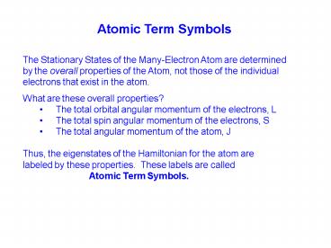 <Notice: Removed> Atomic Term Symbols PowerPoint PPT Presentation