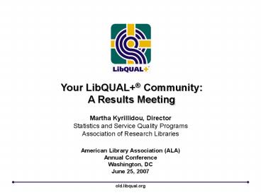 1Your LibQUAL Community A Results Meeting