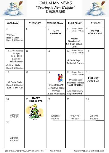 1CALLAHAN NEWS "Soaring to New Heights" DECEMBER