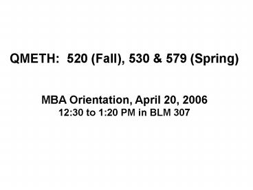 1QMETH 520 (Fall), 530 579 (Spring) MBA