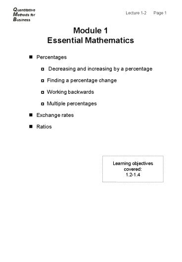 Module 1 Essential Mathematics - PowerPoint PPT Presentation