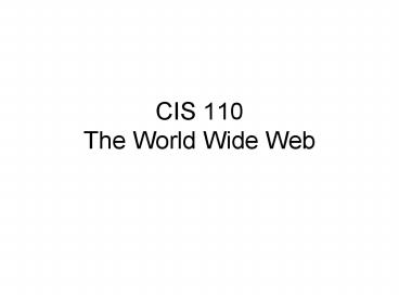 <Notice: Removed> CIS 110 The World Wide Web PowerPoint PPT Presentation